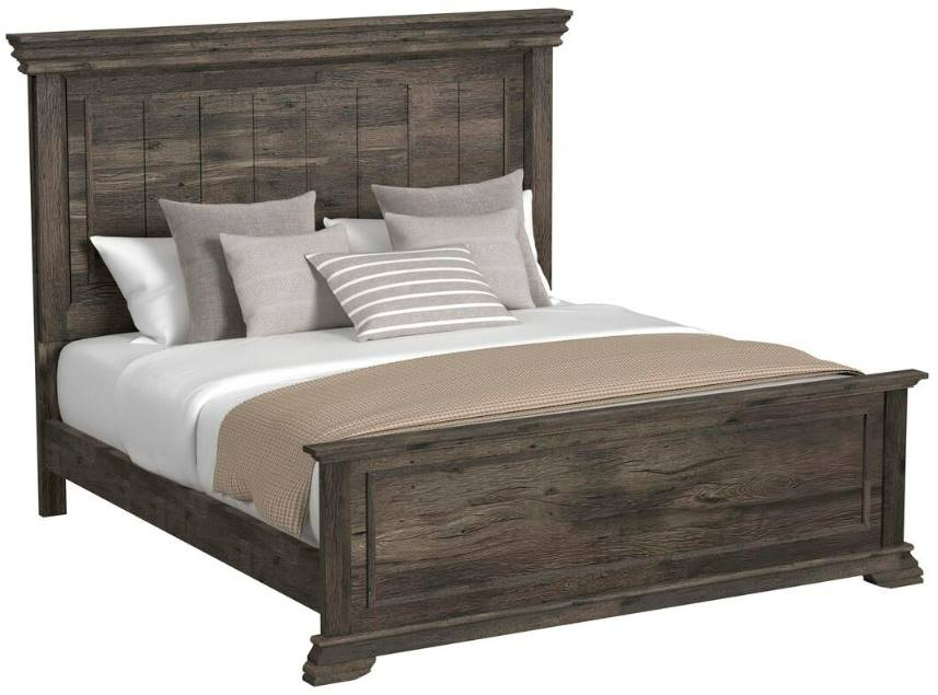 It boasts a bold, modern design with a deep charcoal finish. Its clean lines and paneled headboard and footboard create a striking focal point, offering a blend of contemporary style and comfort for any bedroom.Read More