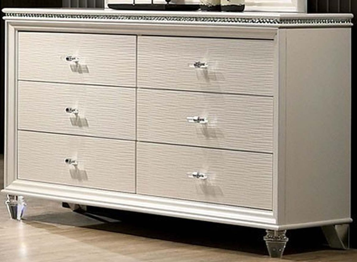 This dresser from the Allie Collection is one the kids can grow with. The pearl white finish, classic designs, and metal accents pair well with any color, ensuring that this set will match whatever phase they encounter.