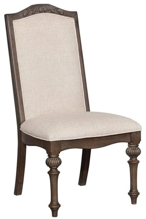 The ivory fabric upholstery provides a stunning contrast against the rustic natural tone finish for a look that is as cozy as it is chic. Intricate leg designs play beautifully off the delicately cut backs for a look that will inspire and amaze.Read More