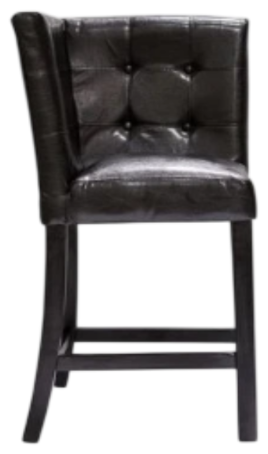 This counter height corner chair is simple yet stylish and will fill up that wasted corner space in your house. The padded espresso leatherette is button-tufted, while the finish is in black, providing beautiful contrast with the matching table.Read More