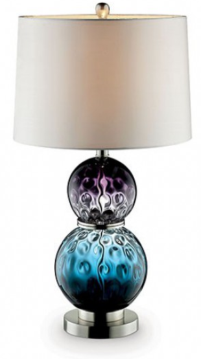 Perfect as an accent to top off a cool, contemporary room, this table lamp features two glass balls with different gradients - aquamarine and purple.Read More